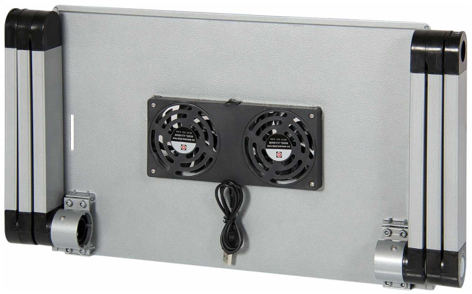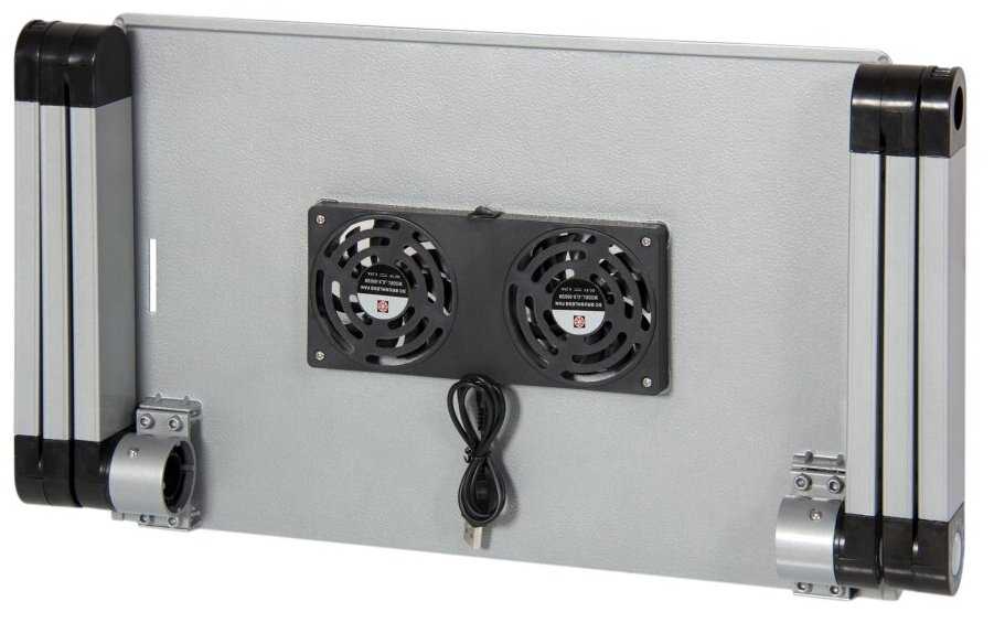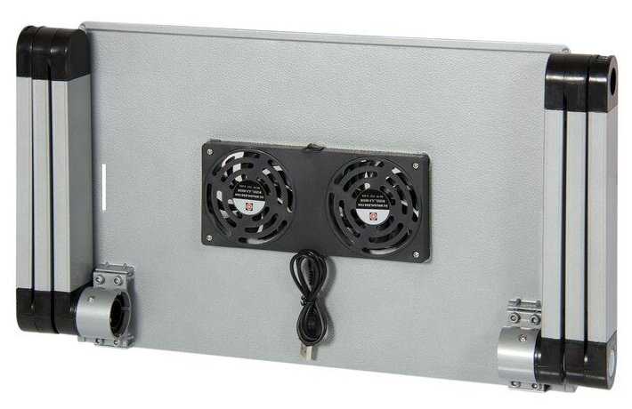 - + Отличный стол, очень удобно стало лежа работать с ноутбуком. И вентиляторы охлаждают заодно и коленки))))))))