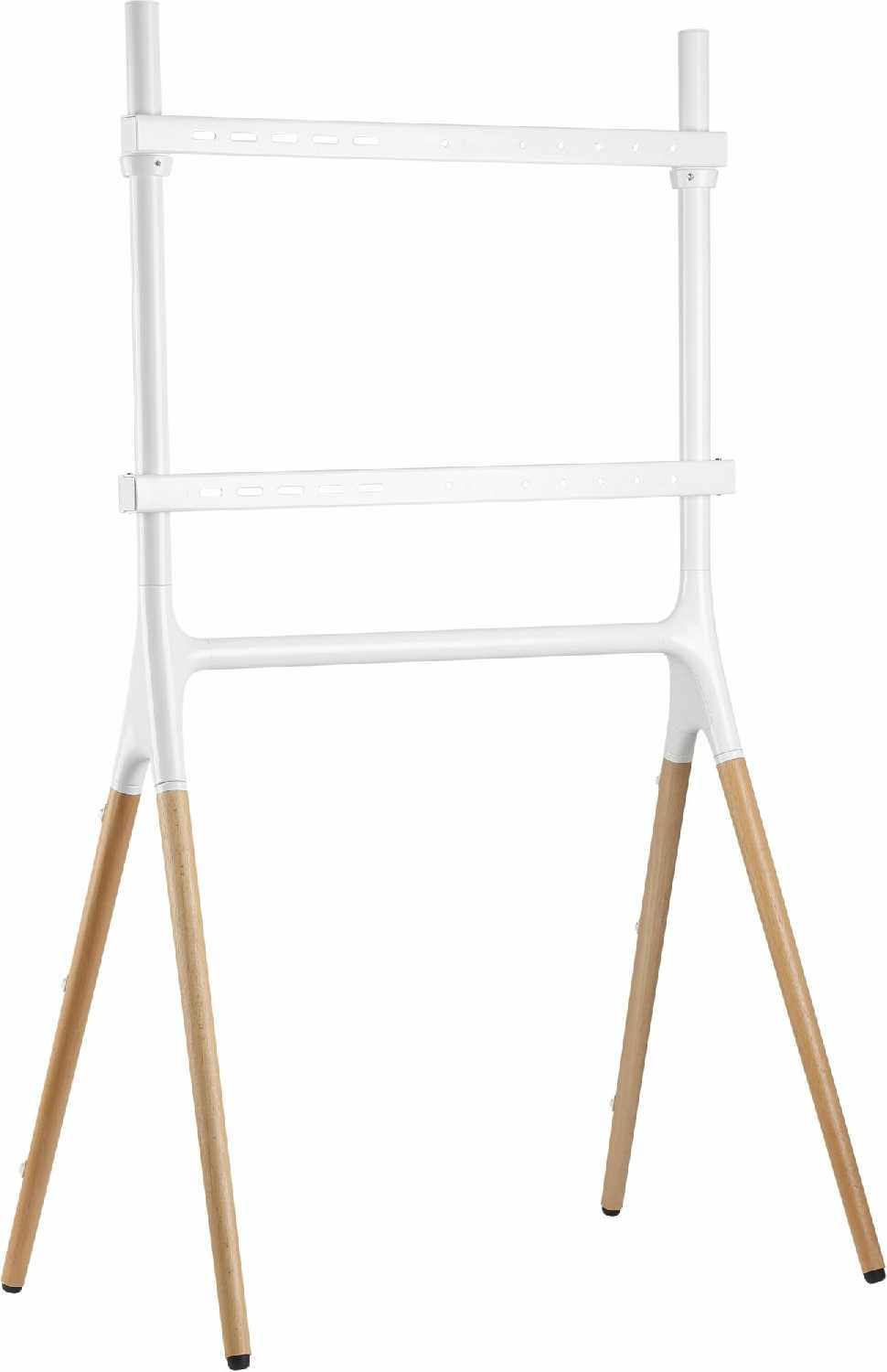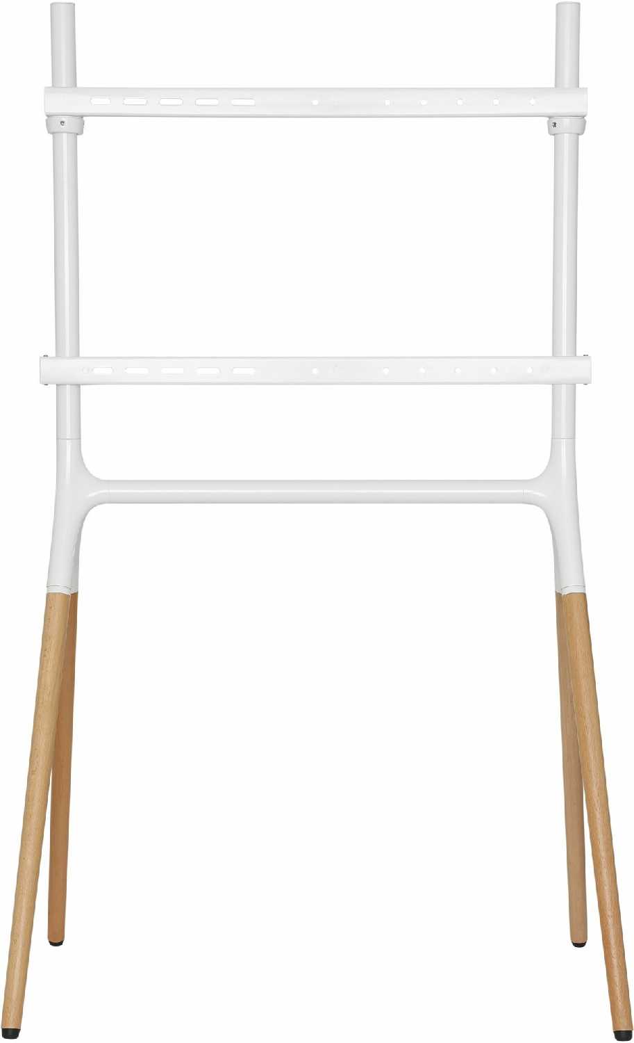 Для большой гостиной такой вариант базирования телевизора выглядит интересно. Конструкция компактная, но в то же время она предназначена для телевизоров с диагональю 49-70 дюймов. Для моего скандинавского интерьера цвет подставки идеальный оказался - белое основание для крепления и березовые ножки.
