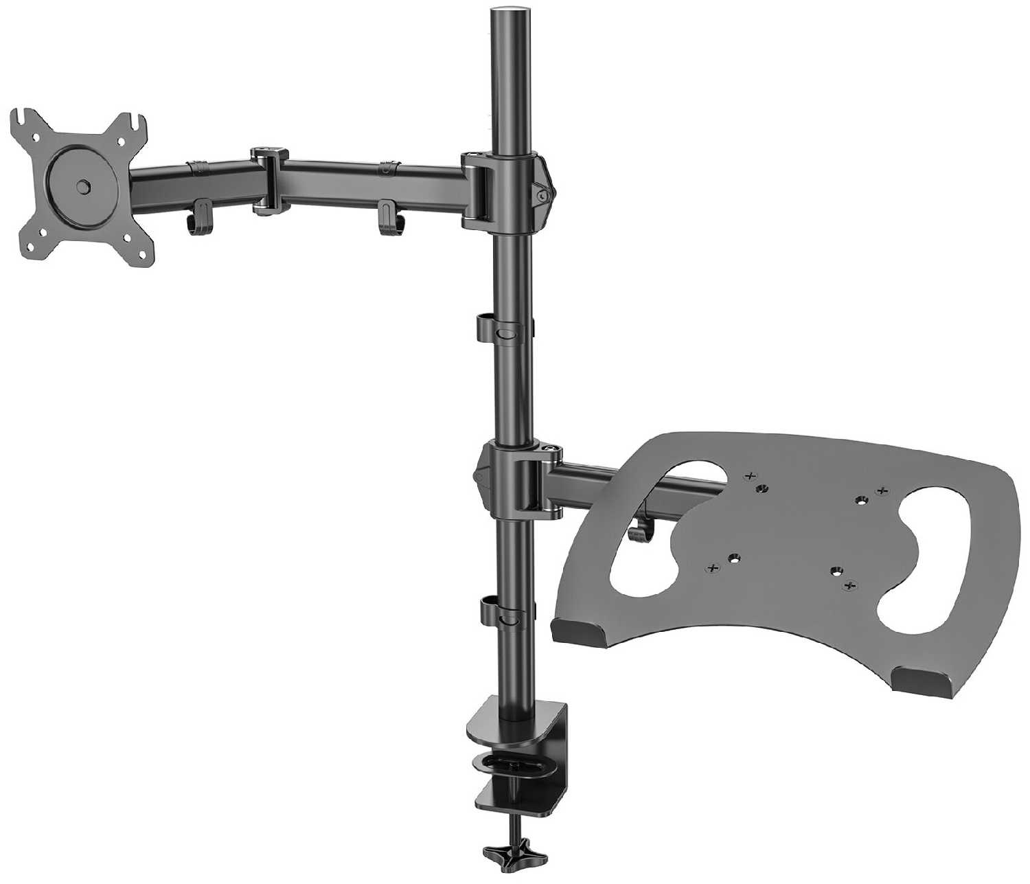 - + Хороший кронштейн за эти деньги, но надо приложить руки. Пришлось один рычаг укоротить, чтобы монитор приблизить к стене, а рычаг для ноута удлинить, чтобы был удобный ход. На фото видно. Если не собираетесь каждый день менять высоту, то идеально за эти деньги.