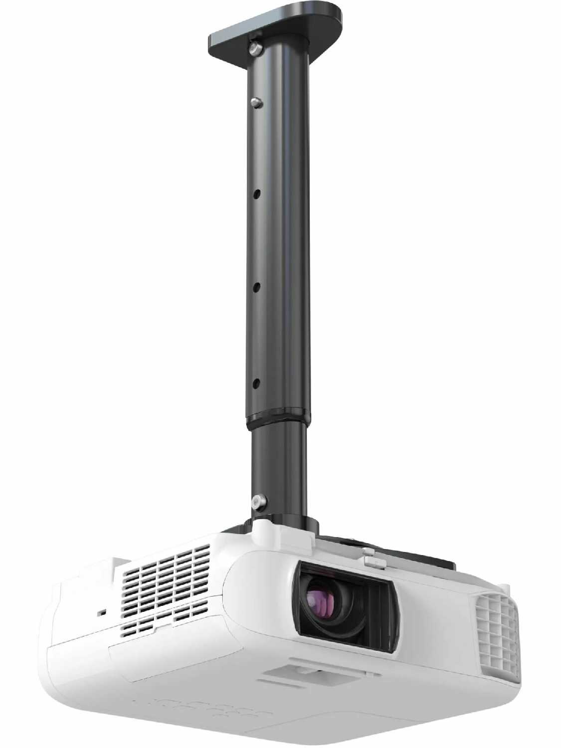 Купили вместе с проектором в школу, как раз по размеру креплений и весу проектора подошел. Монтировали сами - ничего замудренного в этом нет. Кронштейн прочный, можно высоту, наклон и поворот сразу выставить и постоянно лазить наверх и поправлять не надо, не смещается произвольно. Все устраивает.