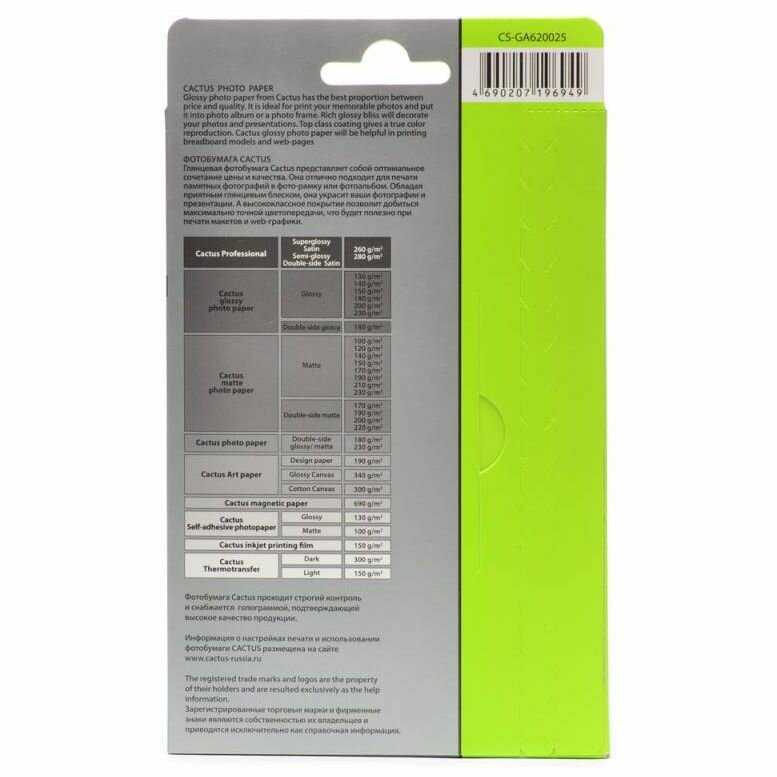 8 отзывов пользователей o cactus GA6200100 [CS-GA6200100] [10x15] [200 г/м²]