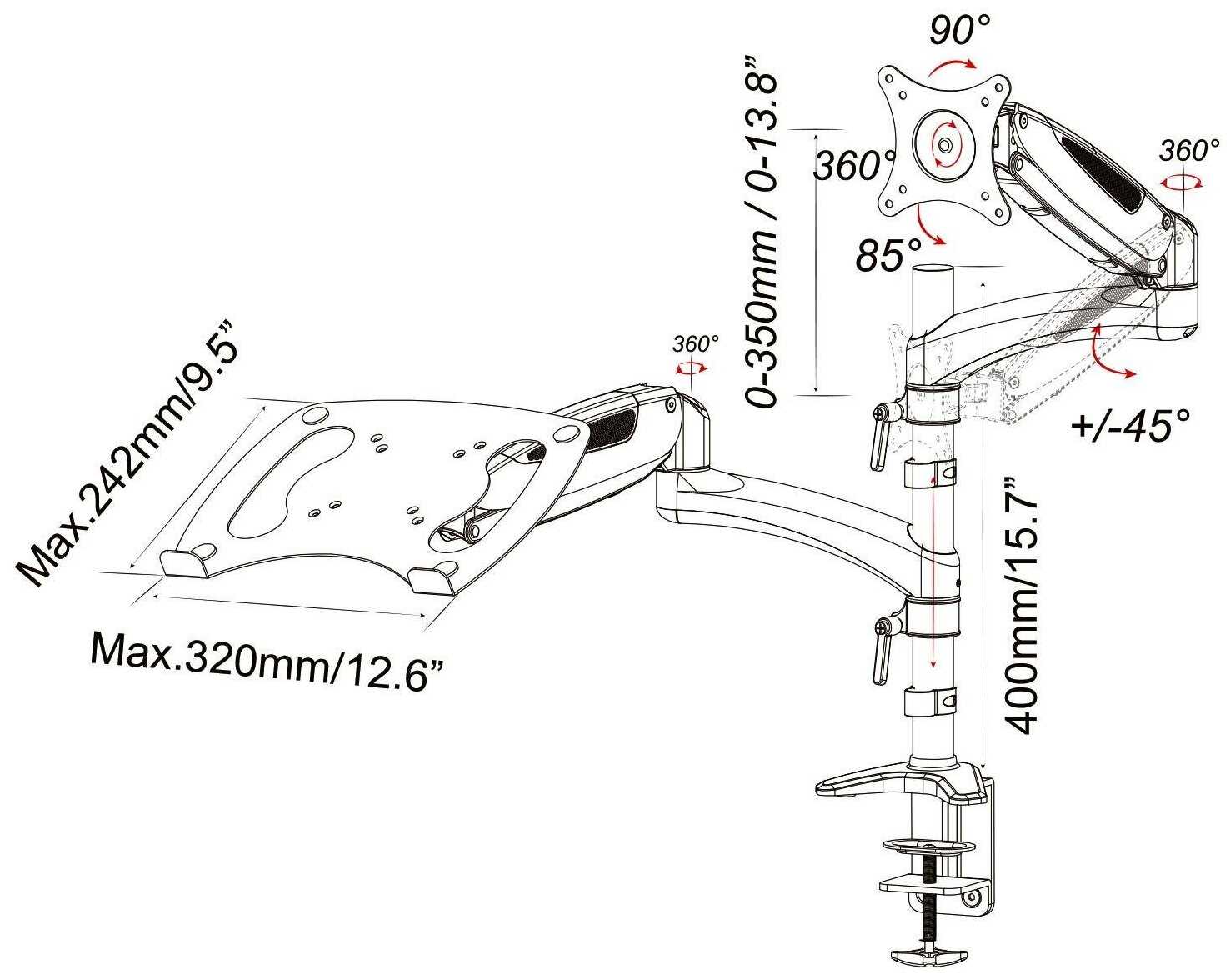 Если хотите поставить на кронштейн и ноут и монитор, лучше берите два разных кронштейна. Иначе когда двигаешь что-то одно (например монитор), второе тоже двигается.
