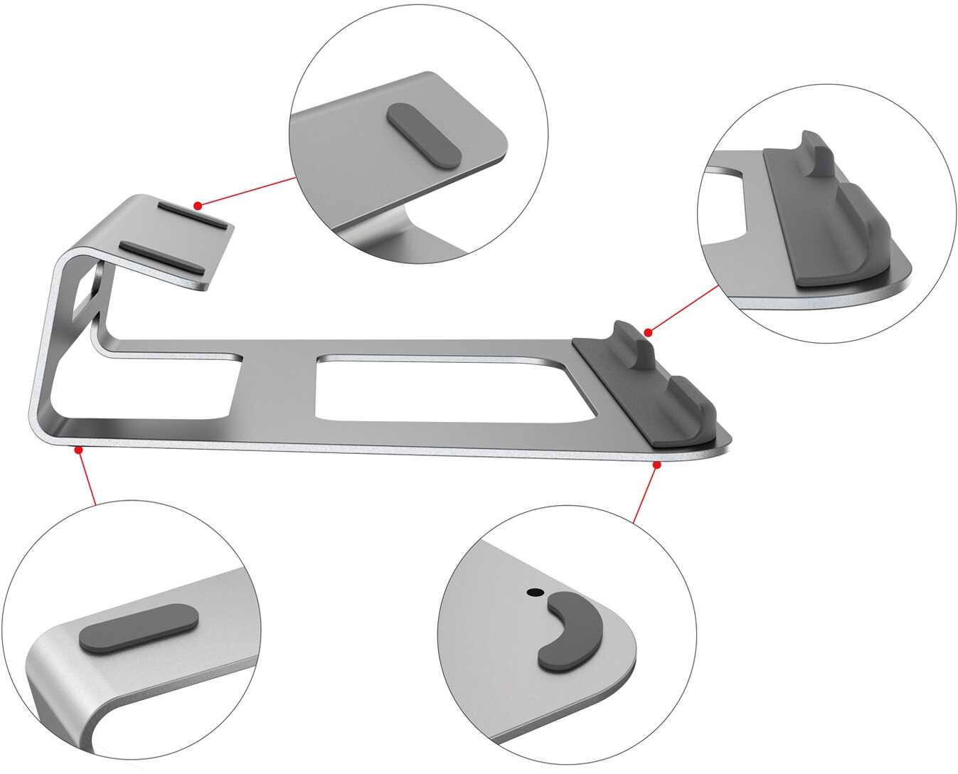 - + Металл, цельная конструкция, увесистая, силиконовые противоскользяшки и упор для ноута - блеск