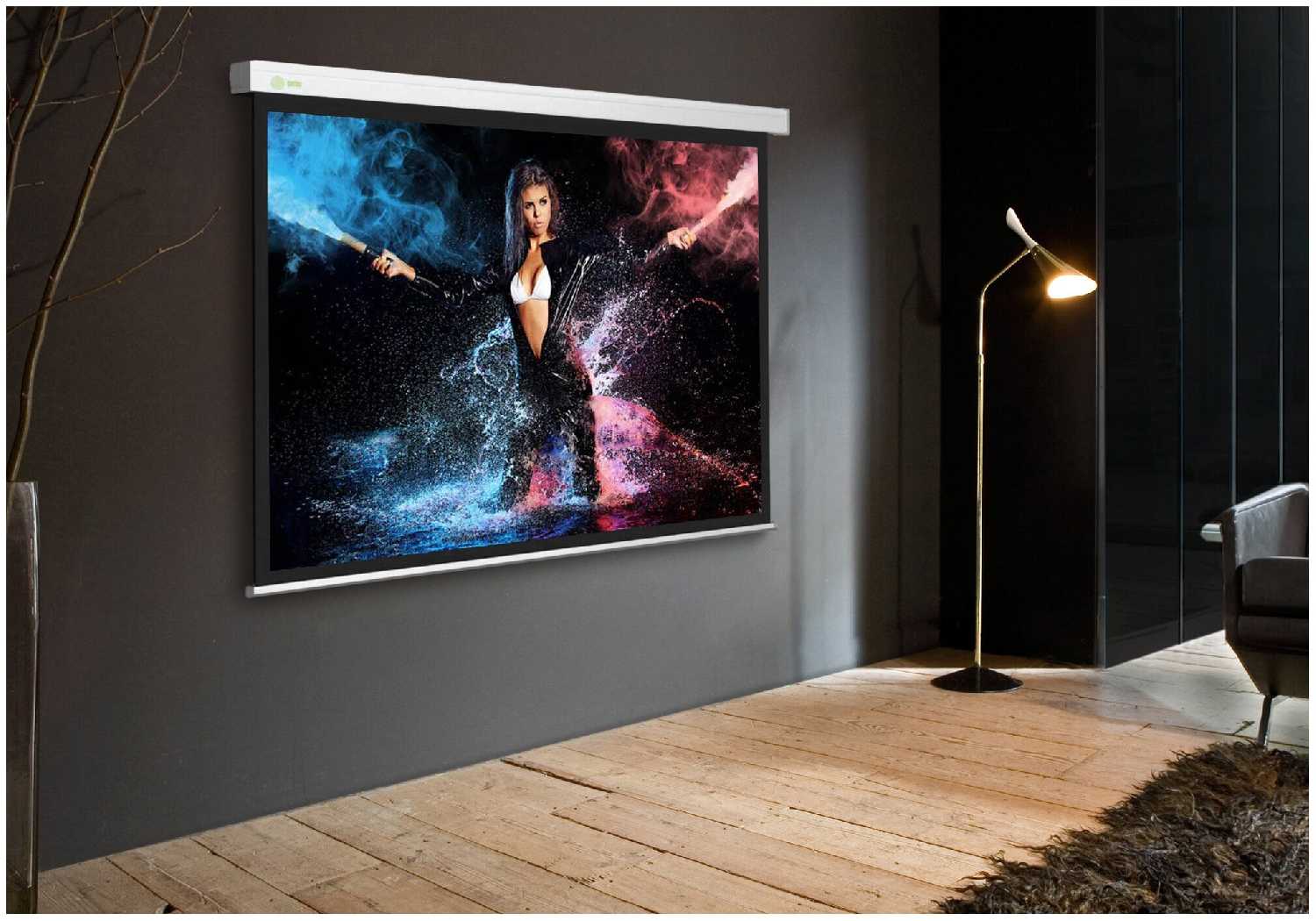 Оказалось отличный (для меня) выбор. Очень аккуратно вписался в интерьер. Я его повесил над окном, что дало несколько плюсов. 1. В разложенном виде перекрывает свет (даже без светозащитных штор можно пользоваться проектором). 2 Размер чуть шире стандартного окна (визуально не выделяется). 3 Узкий корпус (аккуратно встал под Икеевский карниз со шторами и не мешает ими пользоваться когда экран свернут. 4 Довольно удобный крепеж. Металлические дюбели (в комплекте) и крепится с помощью болтов (при установке нужен будет ключ на 10). Удобнее при установке, чем крепить на большие саморезы ИМХО