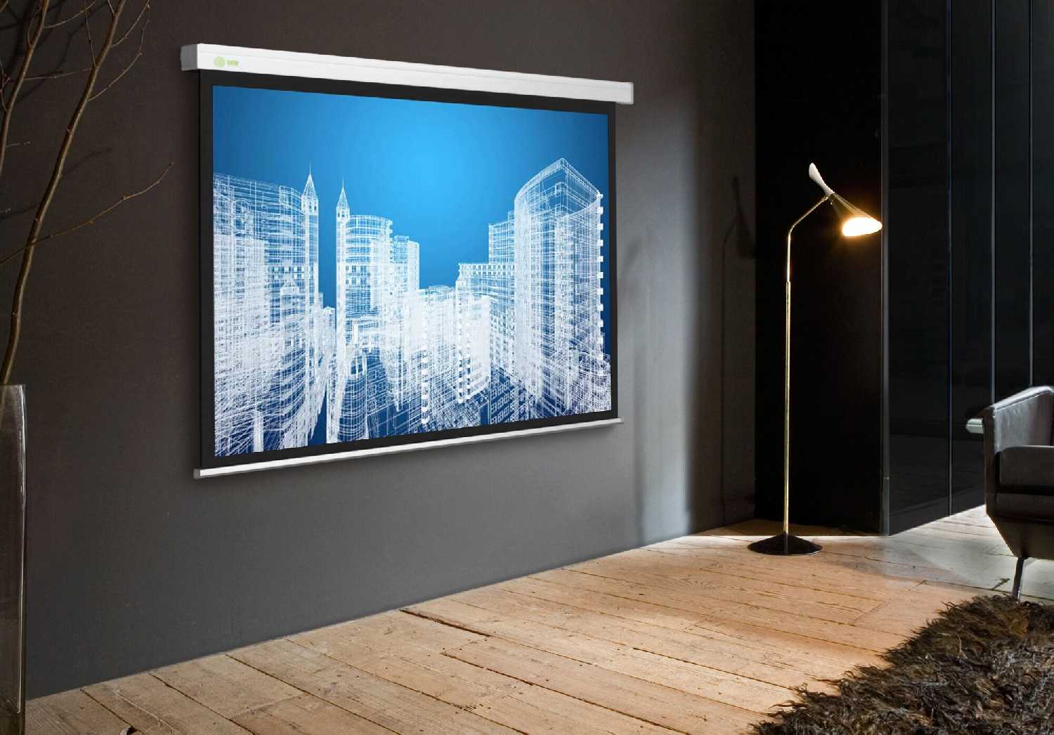 - При установке над окном заменяет традиционные шторы, совмещая функции затемнения и проекционной поверхности.