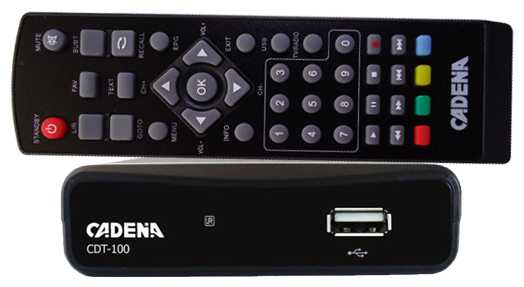 - + Внимание!!! Скажу сразу, что у меня модель: CADENA CDT-100 Триколор (это существенное отличие, как я понял, от других моделей CADENA CDT-100). Приёмник предназначен для просмотра бесплатного цифрового эфирного телевидения высокого качества. Высокочувствительный тюнер обеспечивает стабильное качество принимаемого сигнала. Можно подключить к любой модели телевизора, так как он имеет три выхода подключения: аналоговый (3,5 мм TRRS), HDMI (цифровой выход) и выход RF для подключения к телевизору через антенный вход. Приставка с внешним блоком питания. Основные характеристики таковы: Системный язык: многоязыковой, включая русский Список ТВ и радио каналов: поддерживается EPG (электронный программный гид): P/F EPG, 7дневный EPG Список избранного для радио и ТВ: поддерживается Родительский контроль: поддерживается Телетекст: поддерживается Настройка времени и даты: поддерживается LCN: поддерживается (Вкл. По умолчанию) Автоматический/ручной поиск каналов: поддерживается Обновление ПО через USB: поддерживается Субтитры (OSD): поддерживается Интерфейс HDMI: поддерживается Питание антенны: +5В (макс.300мА), защита от перегрузки. Интерфейсы: ВЧ вход- IEC169-2, гнездо ВЧ выход- петлевой выход, IEC169-2, штекер HDMI - верс.1.3 Аналоговый выход 3,5 мм TRRS- CVBS/L/R USB 2.0 ИК 38кГц. Преимущество этой модели от своих собратьев в том, что в комплекте имеется кабель для подключения к телевизору, т.е. всё в сборе!!! Достал, подсоединил, включил и будет тебе "счастье"!!! Ничего докупать не надо!!!