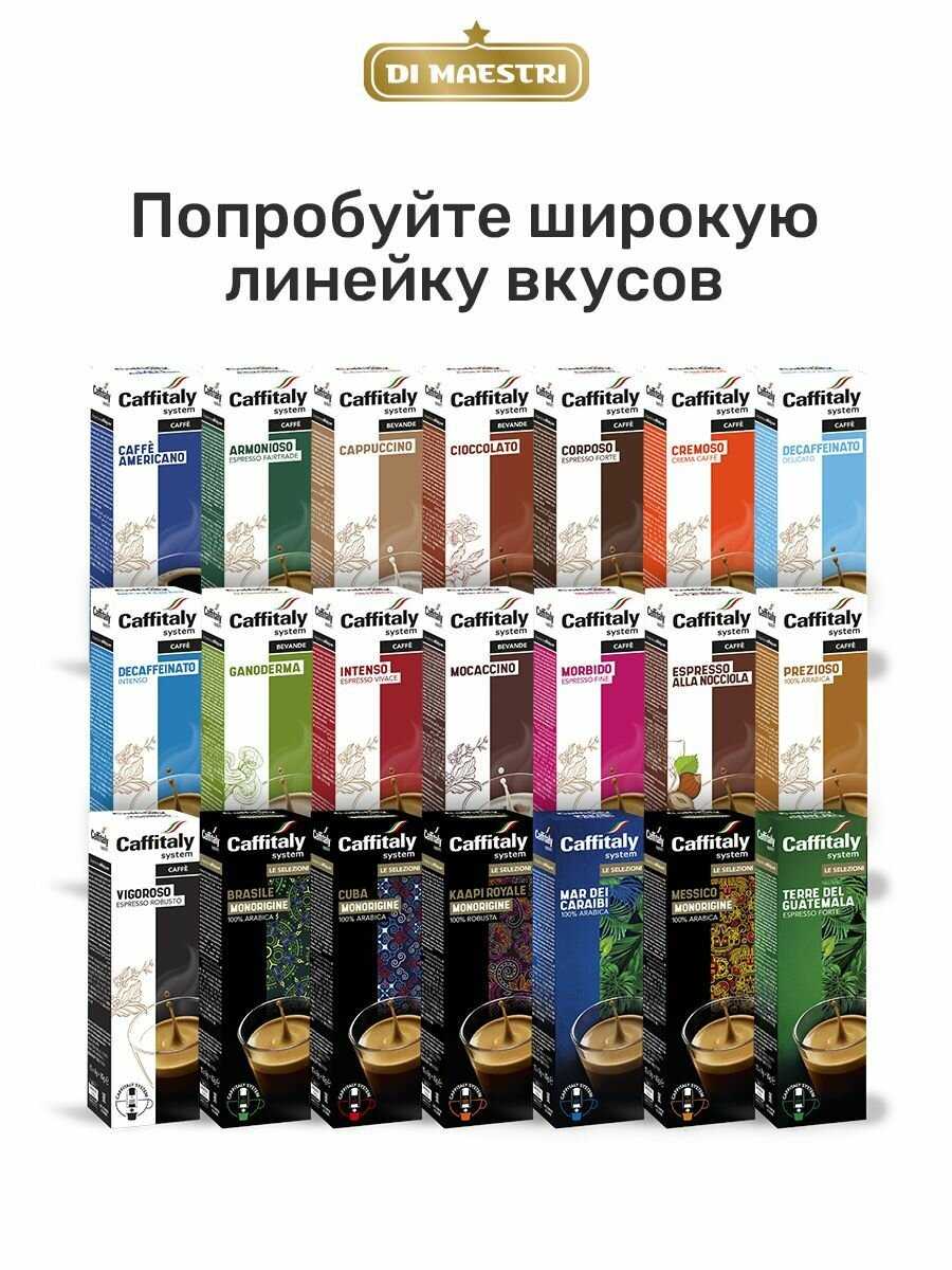 Для кофемашины доступен очень большой ассортимент капсул от различных производителей. Пользователи могут выбирать из множества сортов кофе, блендов, а также напитков вроде чая или горячего шоколада. Это позволяет ежедневно экспериментировать с новыми вкусами. -