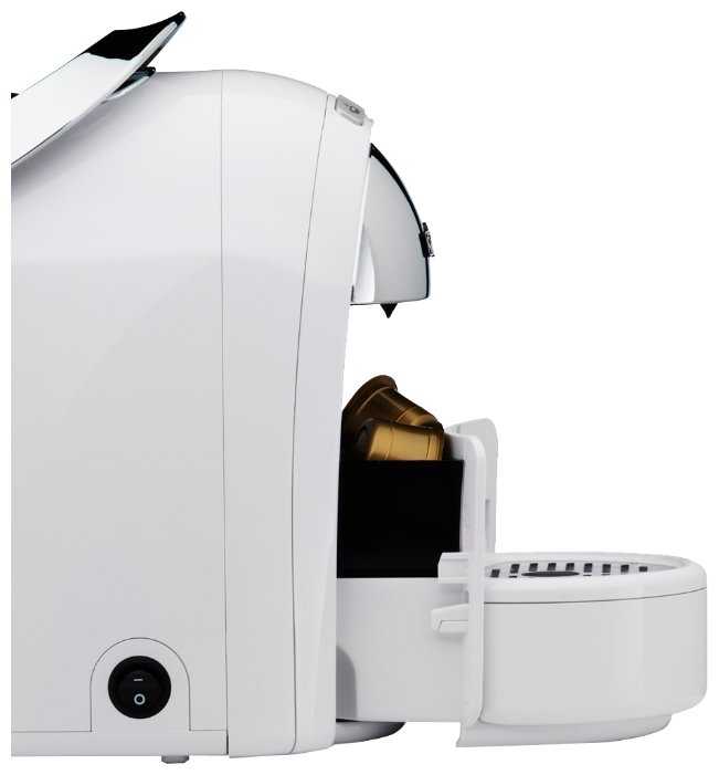 - + Быстрое приготовление кофе. Вкусный кофе. Можно выбирать крепость и вкус, всё зависит от вида капсул. Не нужно возиться с очисткой фильтров, достаточно освободить контейнер с отработанными капсулами.