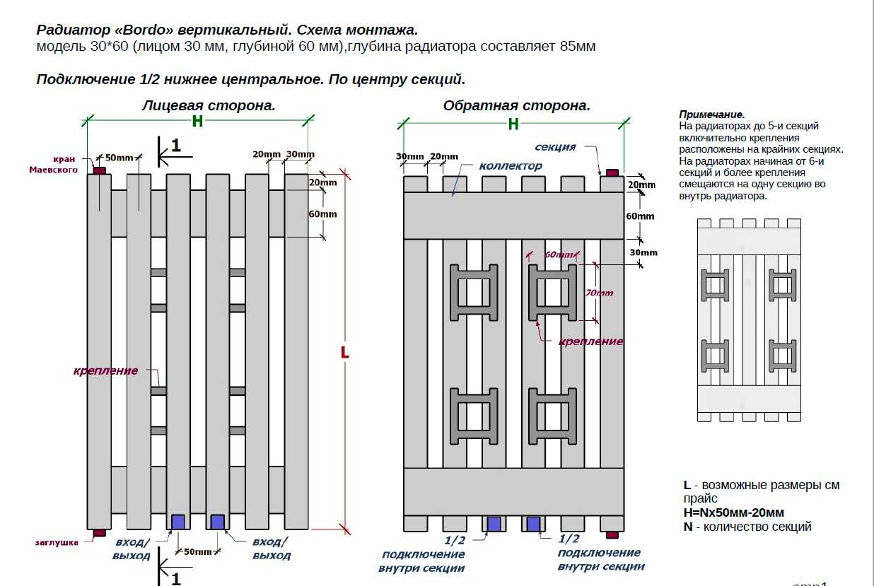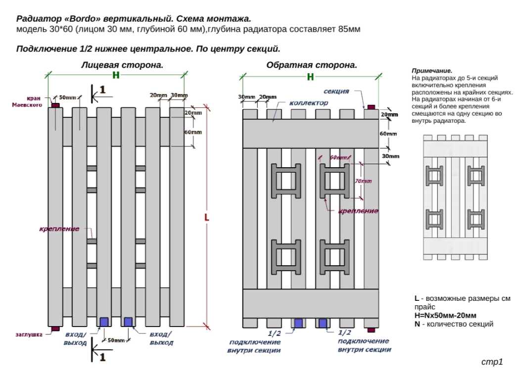 - подключение радиаторов: центральное нижнее
