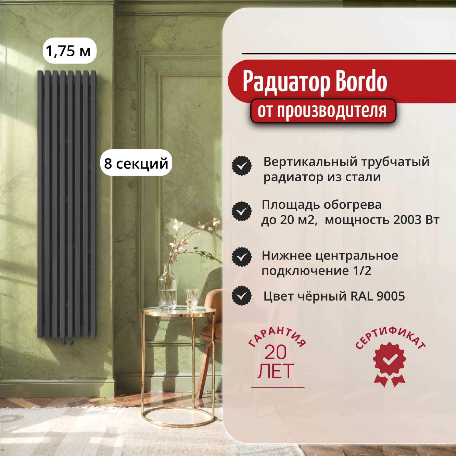 Отзывы о Вертикальный трубчатый радиатор отопления Bordo Вертикальный трубчатый радиатор Bordo 2000 (4 секций)