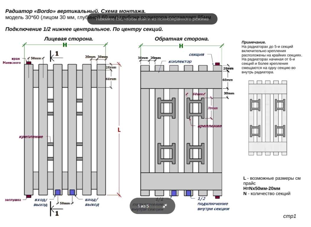 - подключение радиаторов: центральное нижнее