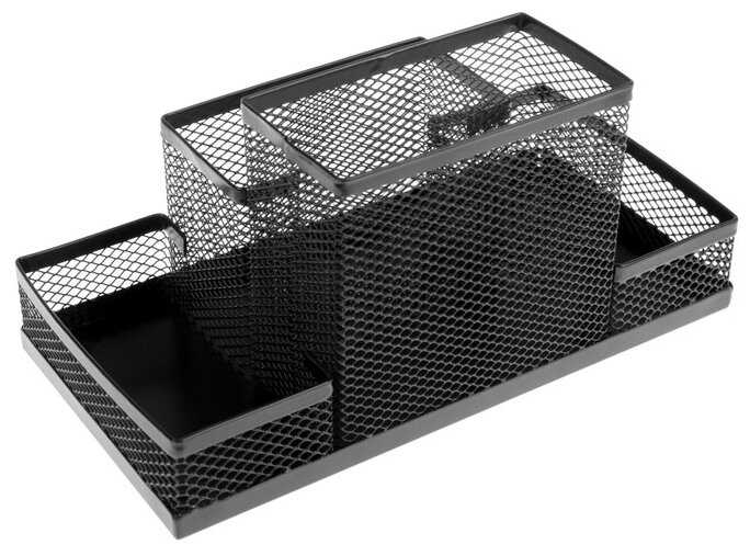 - + Компактный органайзер- подставка для канцелярских принадлежностей и не только для них.