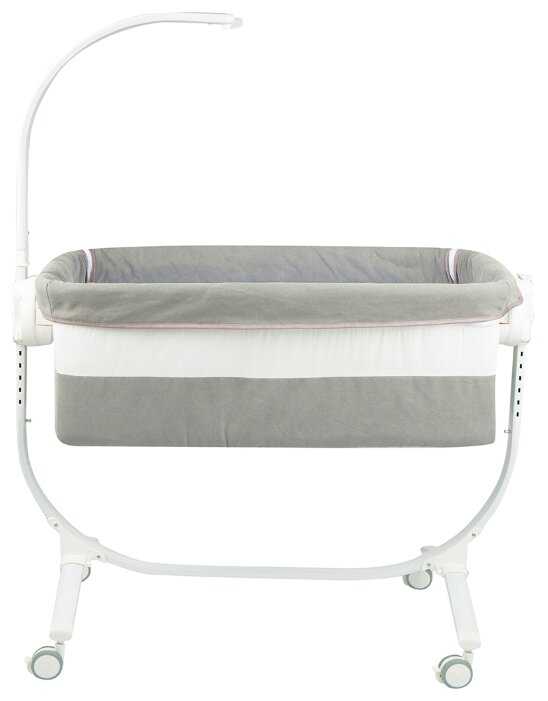 - + Очень хорошая и функциональная кроватка. Плавный ход колес, передвигается очень тихо. Открывающийся бортик, возможность прицепить мобиль. Всем этим пользуемся...