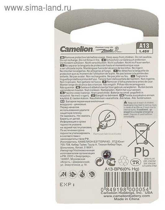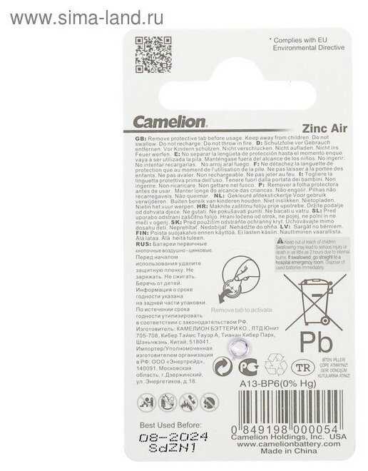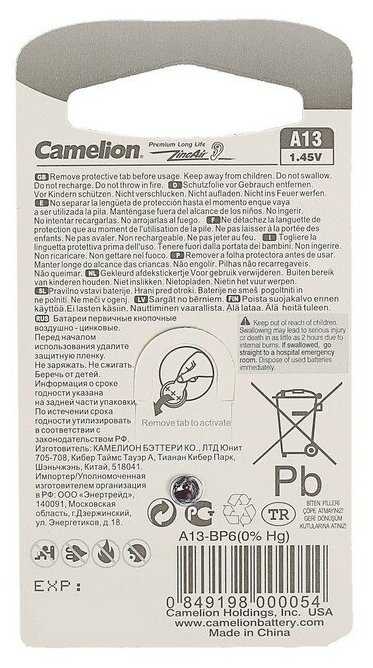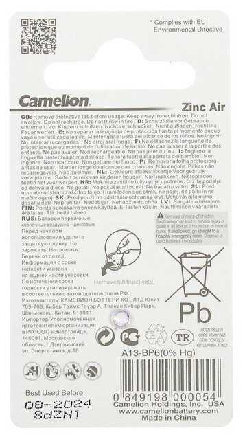 Лучшие цены сегодня на Camelion A13 (PR48)