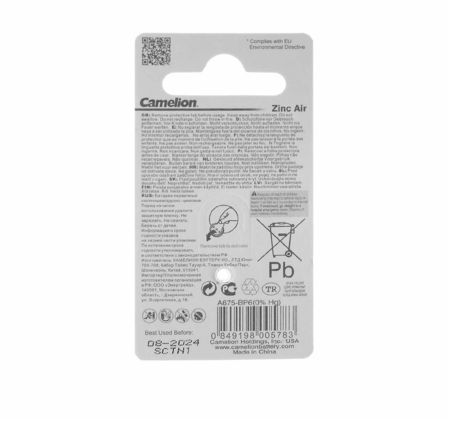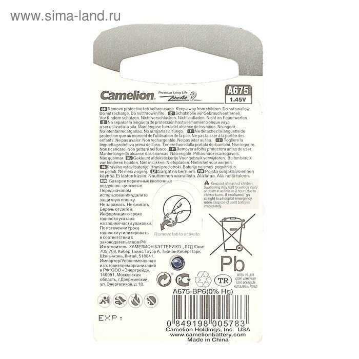 | Особенности : | для слуховых аппаратов |