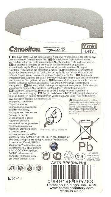 Типоразмер : | LR44 (LR1154, V13GA, AG13, G13, RW82), LR63 (LR521, AG0, G0), PR44 (ZA675, V675A, DA675), PR48 (ZA13, V13A, DA13) |