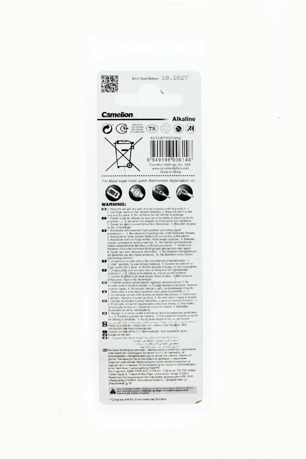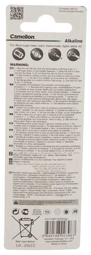 Типоразмер : | LR44 (LR1154, V13GA, AG13, G13, RW82), AAA (R03, LR03, FR03, HR03, ZR03, MN2400), LR43 (LR1142, AG12, G12, RW84), PR44 (ZA675, V675A, DA675), LR63 (LR521, AG0, G0), A76 |