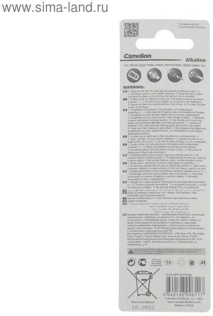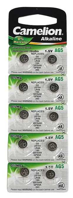 Типоразмер : | LR48 (LR754, AG5, G5), LR54 (LR1130, V10GA, AG10, G10, RW49), LR63 (LR521, AG0, G0) |