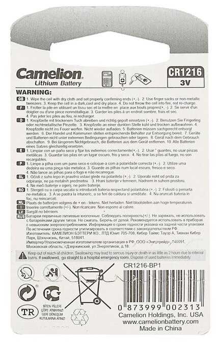 Характеристи Camelion CR1216