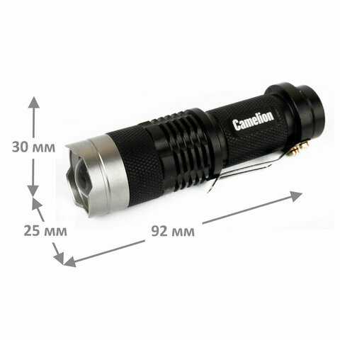 | Особенности : | батарейки, влагозащита, дальний свет, клипса для крепления, мигание, регулировка угла свечения, ударопрочный корпус, фокусировка с зумом, экономичный режим |