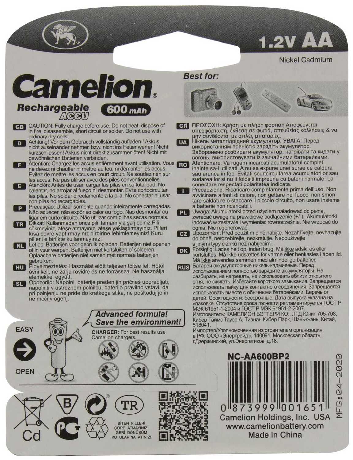 Характеристи Camelion NC-AA600