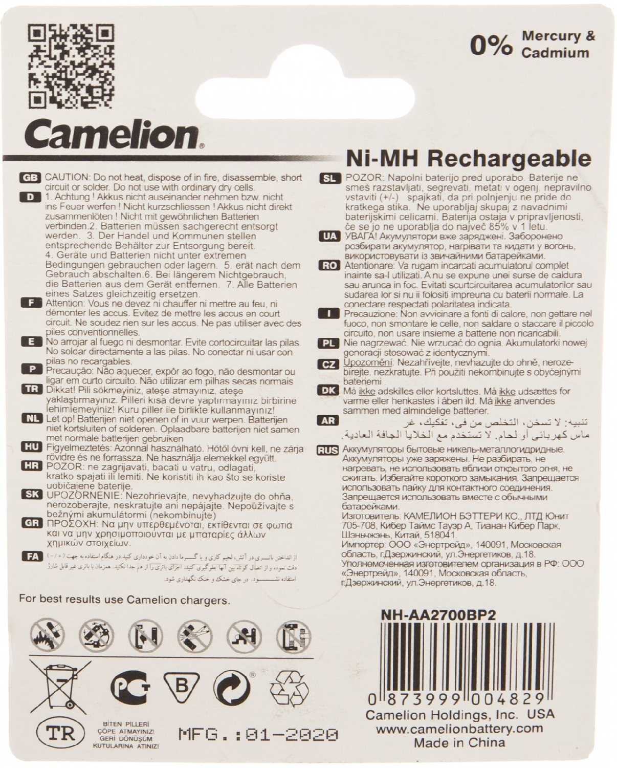 Характеристи Camelion NH-AA2700