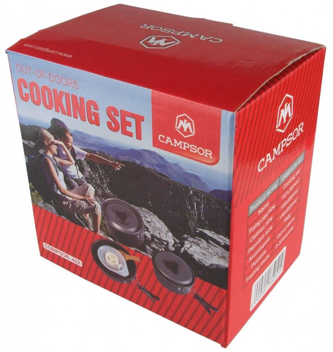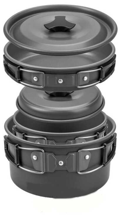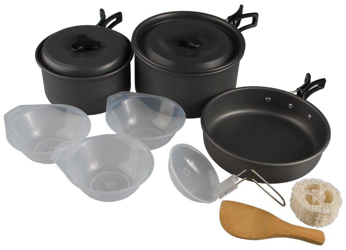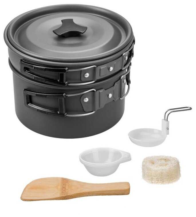 | Дополнительная информация : | подробная комплектация: - 2 кастрюли: 1.5л и 0.8л 166 х 68 мм и 136 х 68 мм, - сковорода: 0.7л 167 х 39 мм, - крышки - 2 шт., - пластиковые миски - 3 шт., - складной пластиковый половник, - деревянная лопатка, - губка для мытья посуды, - чехол., особенности: складная конструкция |