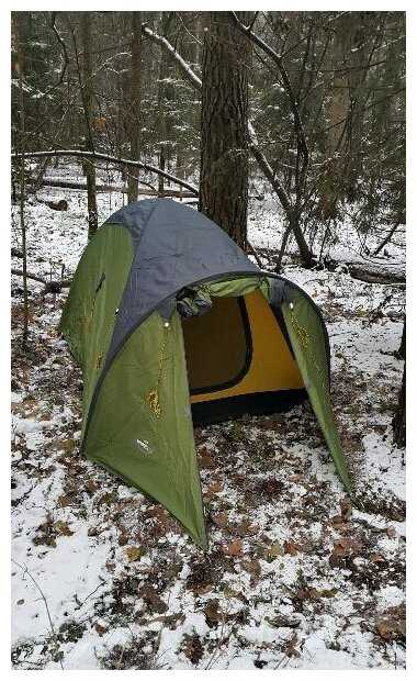 - + Отличная палатка! Держит дождь, довольно просторный тамбур.
