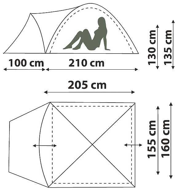 - - Полное отсутствие какого-либо намёка на тамбур с противоположной стороны - обувь положить под тент, возможно, удастся, но не более того. Немного коротковата. При моём росте (183) лежать, не касаясь противоположных стенок, трудно.