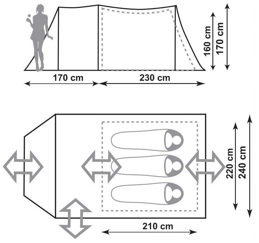 - + Очень просторная палатка! Вдвоём можно хоть танцевать :)