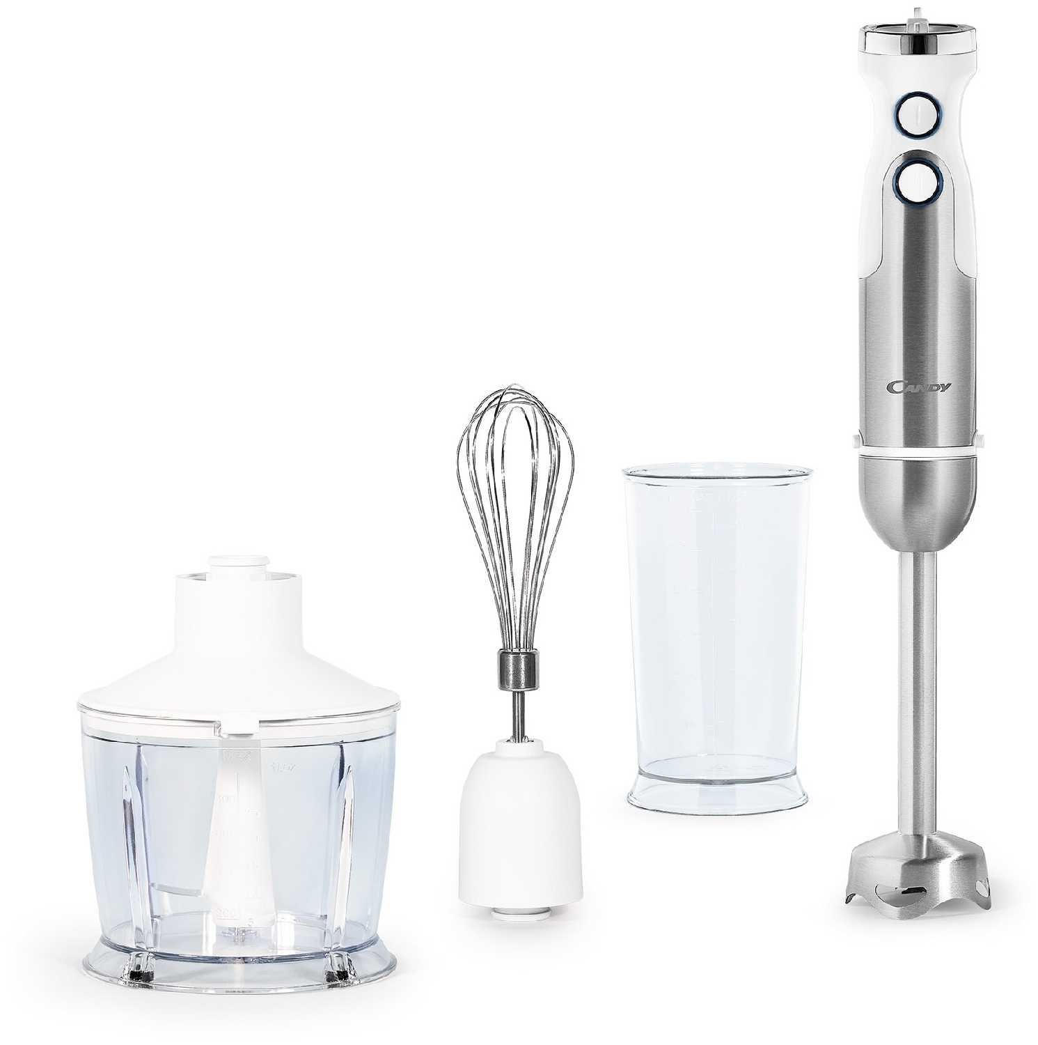 - В комплекте: измельчитель (800 мл), мерный стакан (600 мл), венчик, погружная насадка.