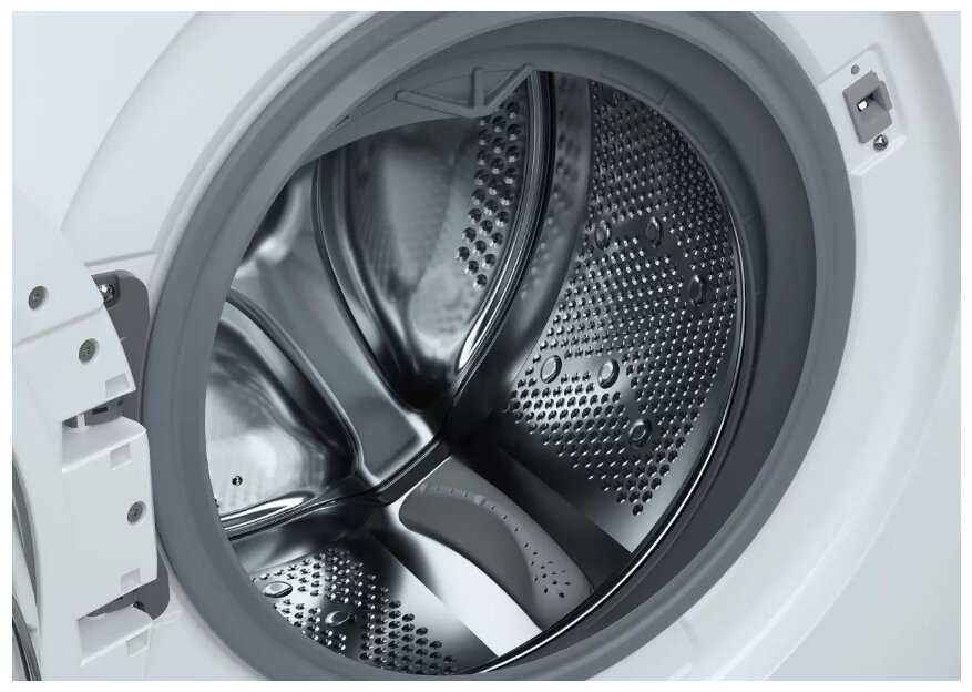 - Рельефная поверхность барабана обеспечивает равномерное распределение белья, снижая вибрации даже на максимальных оборотах (до 1400 об/мин).