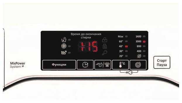 - + Информативный дисплей и все символы прекрасно видны. На дисплее отображается время до окончания стирки. Количество программ и грамотно подобранные параметры. Дверца прочно закрывается, ни пена, ни вода не подтекают.