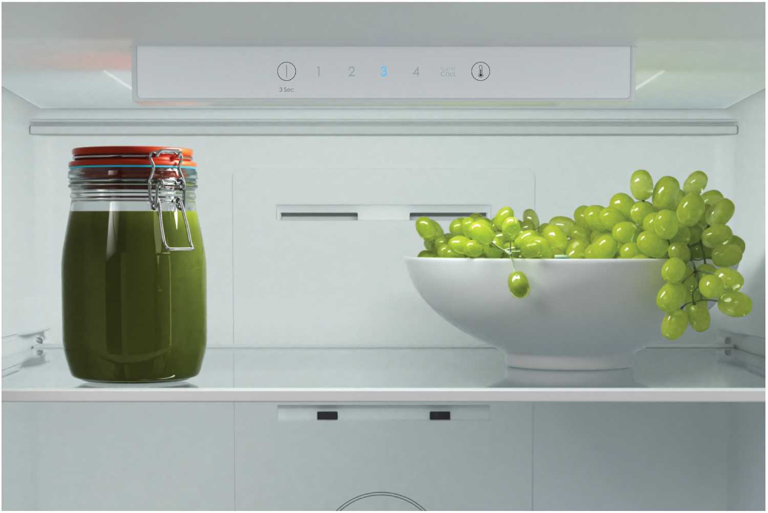 - Равномерное распределение холода: продукты в холодильной камере долго сохраняют свежесть, а в морозилке достигается температура до –23°C.
