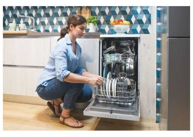 - + Простая в обращении, дизайн впишется практически в любой интерьер, достаточно тихая. Качественно собрана, детали подогнаны хорошо, стыки ровные, у меня был случай, когда крышка дверь посудомойки стояла криво, но при этом она не протекала.