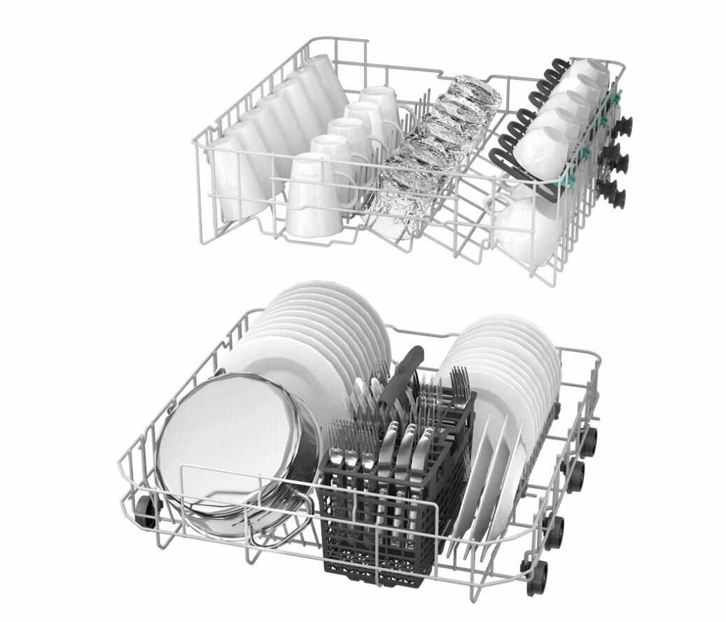 - + Вместительная, не смотря на размер, смотрится компактно. Посуду отмывает хорошо.