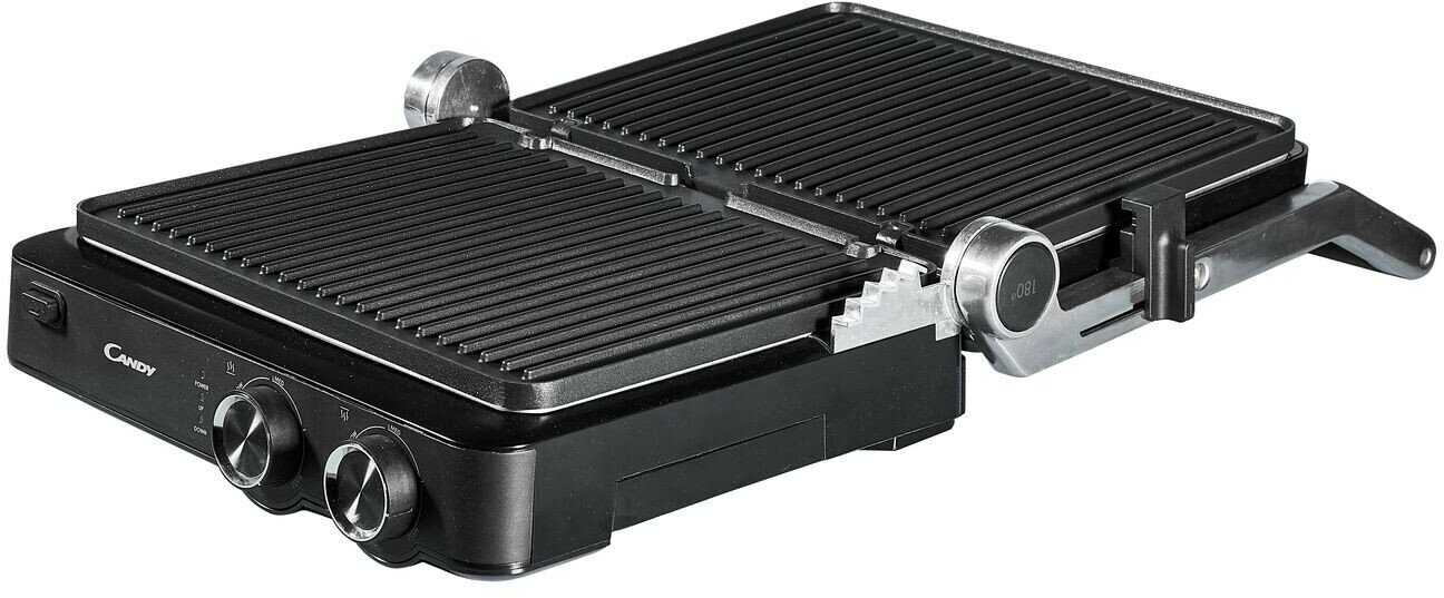 - Функция полного раскладывания на 180° превращает гриль в две независимые поверхности для одновременного приготовления блюд.