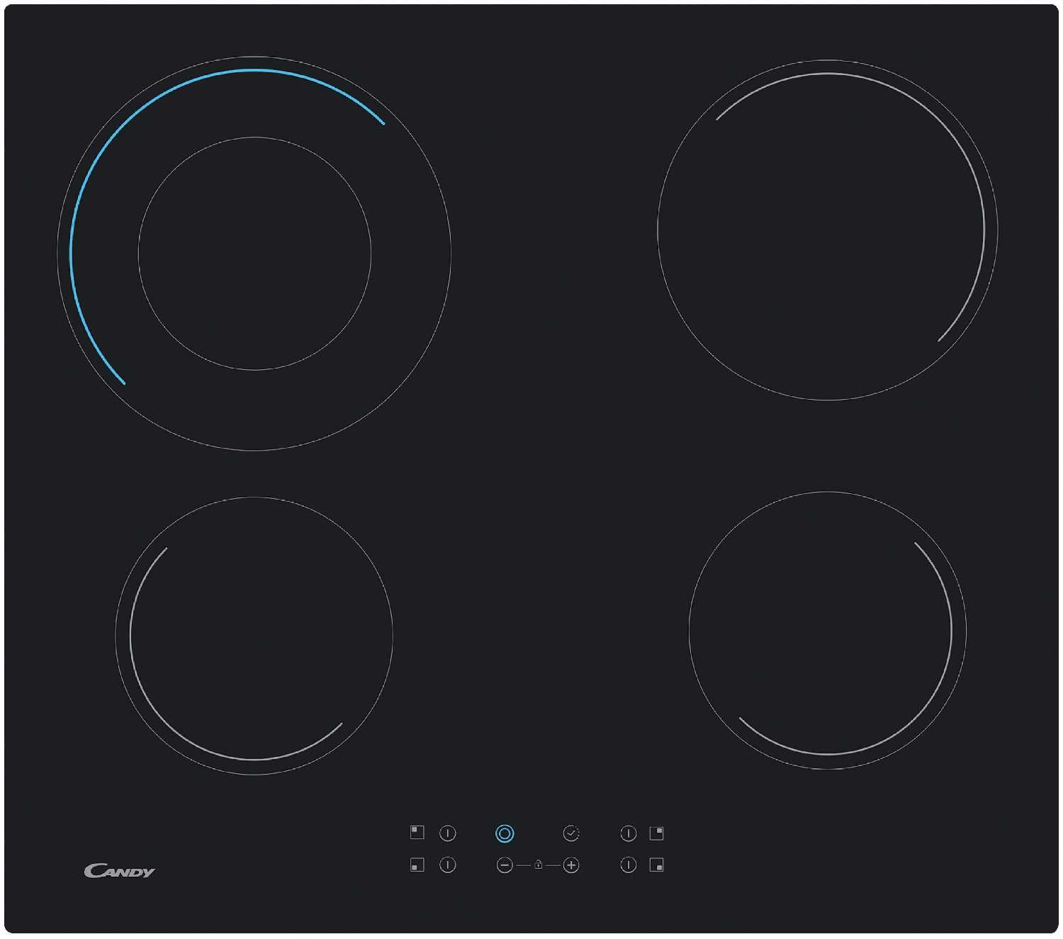 защитное отключение конфорок, кнопка блокировки панели, индикатор остаточного тепла