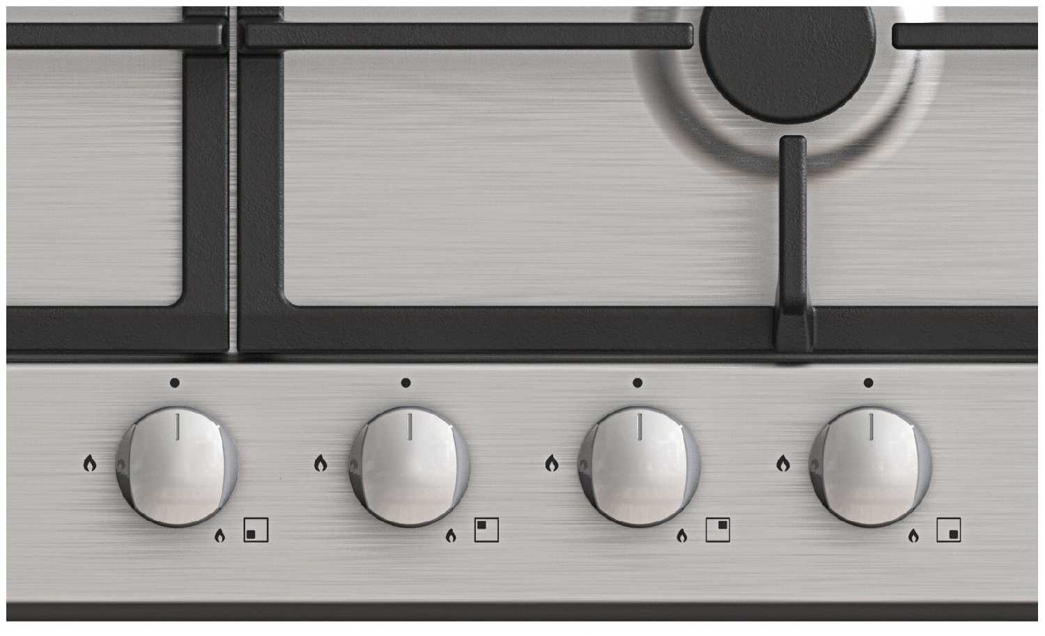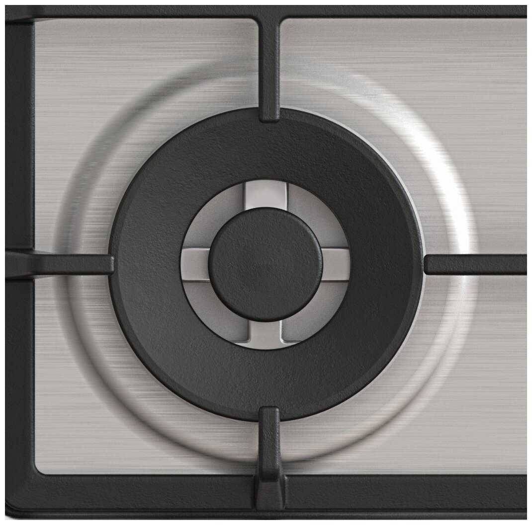 - + лаконичный дизайн, решетки можно мыть в посудомойке, двухрядная конфорка, расстояние между конфорками