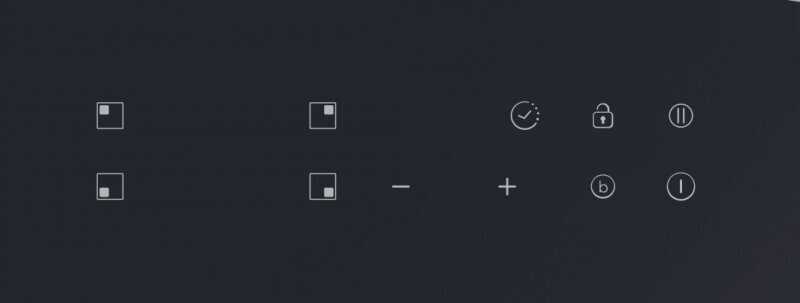 - Функция "Пауза" мгновенно приостанавливает работу всех конфорок без сброса настроек.