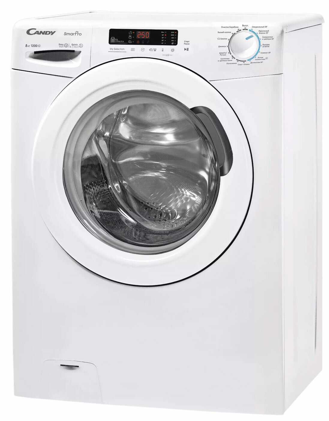 - + Стиральная машина узкая Candy Smart Pro CSH44283DW/2-07 сделана качественно, вмещает довольно большой объём 54 литра и загрузки вещей в барабан 8 кг максимальная загрузка (синтетика), 2 кг максимальная загрузка (шерсть) и при этом узкая, очень здорово вписалась в мою ванную благодаря своим размерам, и дизайну. Много режимов, имеется такой, чтоб быстро сполоснуть вещи 14 мин. Хорошо отжимает 1200 об/мин, при этом энергопотребление за цикл 1,04 кВт/ч, класс энергоэффективности А. Уровень шума низкий при стирке 51 дБ, при отжиме 75 дБ. В общем стиральной машиной доволен!