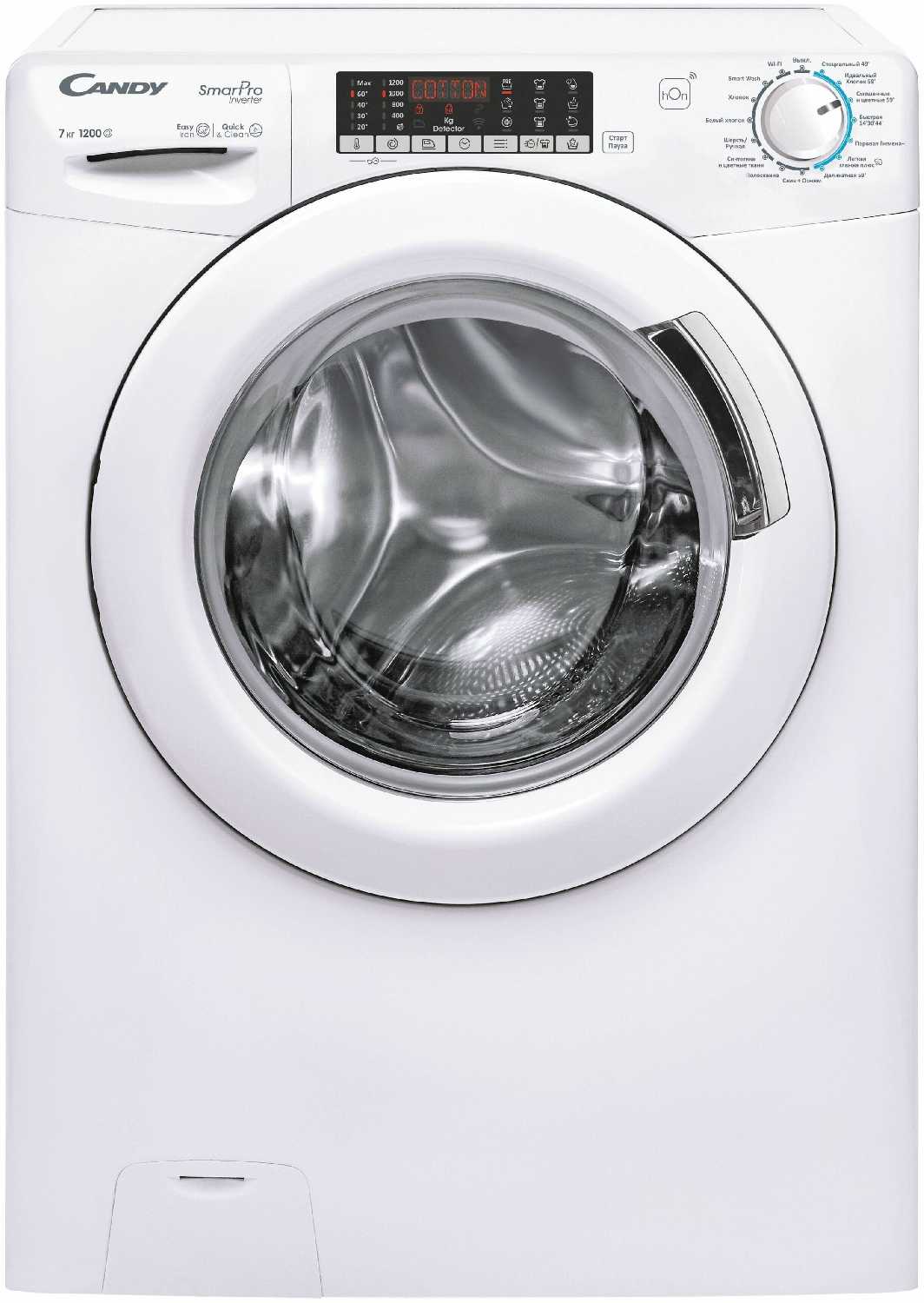 Управление через приложение Candy Smart Pro позволяет запускать стирку, выбирать из 90+ программ (включая эксклюзивные, как "пар 49 мин"), отслеживать время до завершения и получать уведомления. Однако для подключения требуется включение Bluetooth, GPS и настройка роутера. Некоторые пользователи столкнулись со сложностями при первом подключении, но после корректировки настроек функция работает стабильно. -
