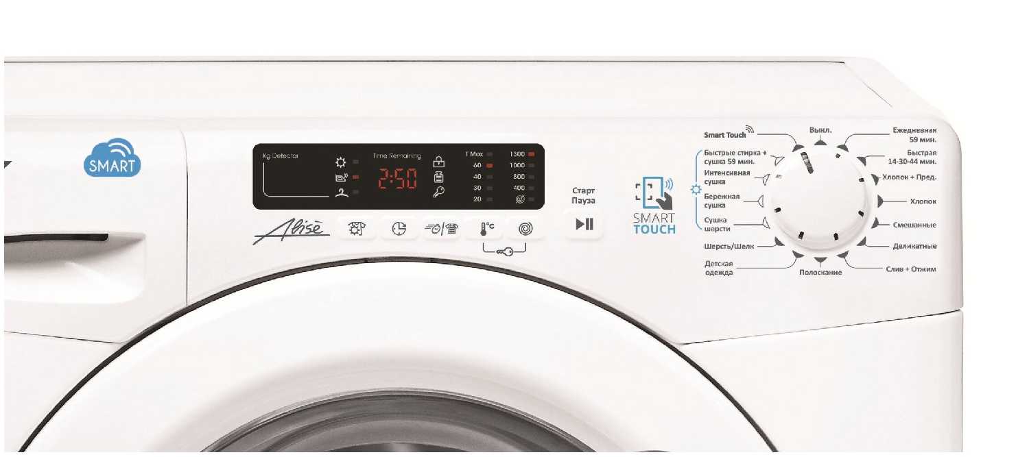 - Комбинированный цикл "стирка+сушка" за 59 минут для небольших загрузок.