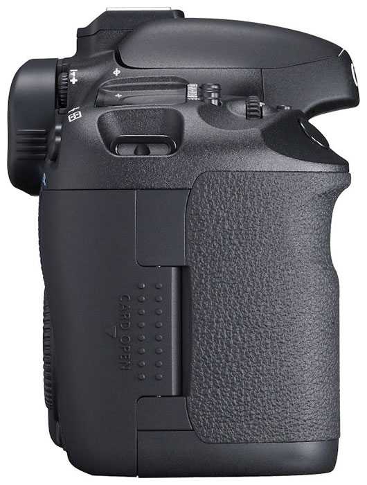 - Эргономичный хват, удобен с тяжёлыми объективами (L-серия), долговечный затвор (150 тыс. срабатываний).