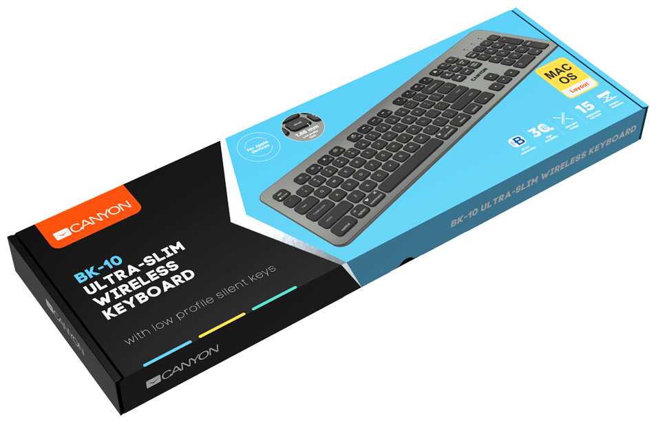 Купил клавиатуру для Mac, так как оригинальная полноразмерная уж очень дорогая. Возможно, оригинал и получше будет, все-таки Apple есть Apple, но и эта клавиатура очень достойная. Внешний вид - супер, вживую смотрится лучше, чем на фотографиях. Сборка - хорошая, материалы приятные, нравятся тактильные ощущения. Клавиши на оригинальной клавиатуре от Apple - крупнее, на Canyon поменьше, возможно кому-то будет менее удобно печатать, но я привык за несколько дней. При этом ход клавиш небольшой, очень приятные нажатия. Смело могу рекомендовать эту клавиатуру для тех, кому жалко денег на оригинал!