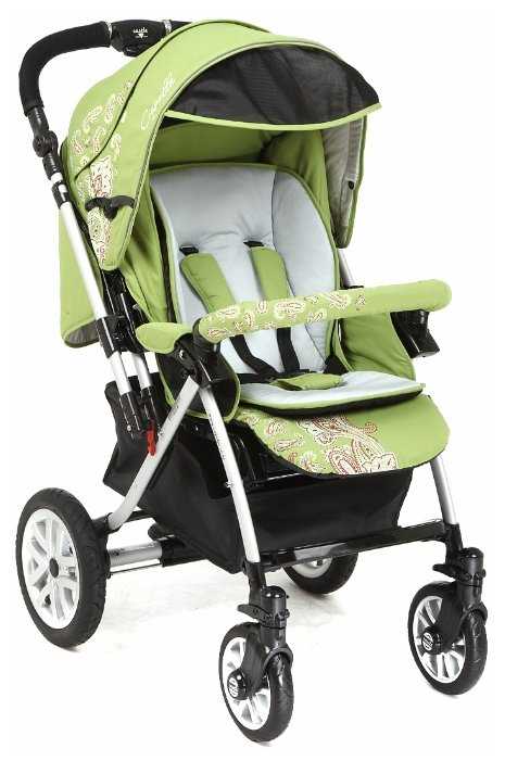 - меняющийся наклон спинки (ребёнок ещё не сидит, но коляску можно использовать);