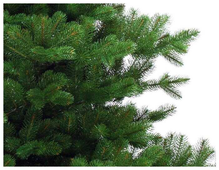 - + Отличная елка, темно-зеленая, пушистая, много веток. Похожа и на пихту и на ель , иголки литые средней длины и не колючие, ближе к стволу обмотана зеленой мягкой пвх мишурой. Ствол тоже обмотан. Но этого вообще не видно из-за густых веток. Хороший обЪемный самый нижний ярус, гармонично смотрится.