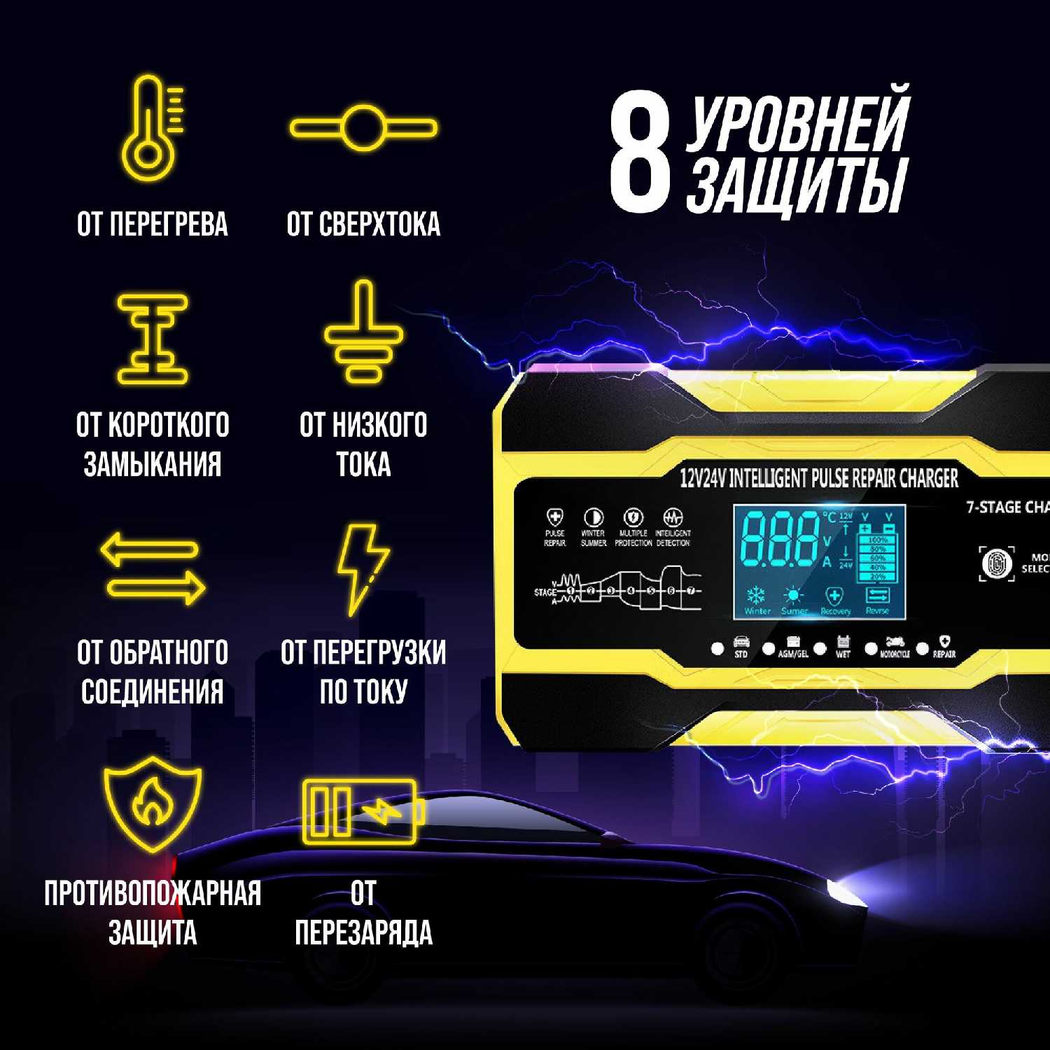 Да, встроенные защиты включают контроль полярности и отключение при перегреве или коротком замыкании. Например, при ошибочном подключении к полностью неисправному АКБ устройство переходит в режим ошибки вместо запуска процесса. Однако оно не имеет датчиков температуры батареи, что отмечается как минус.