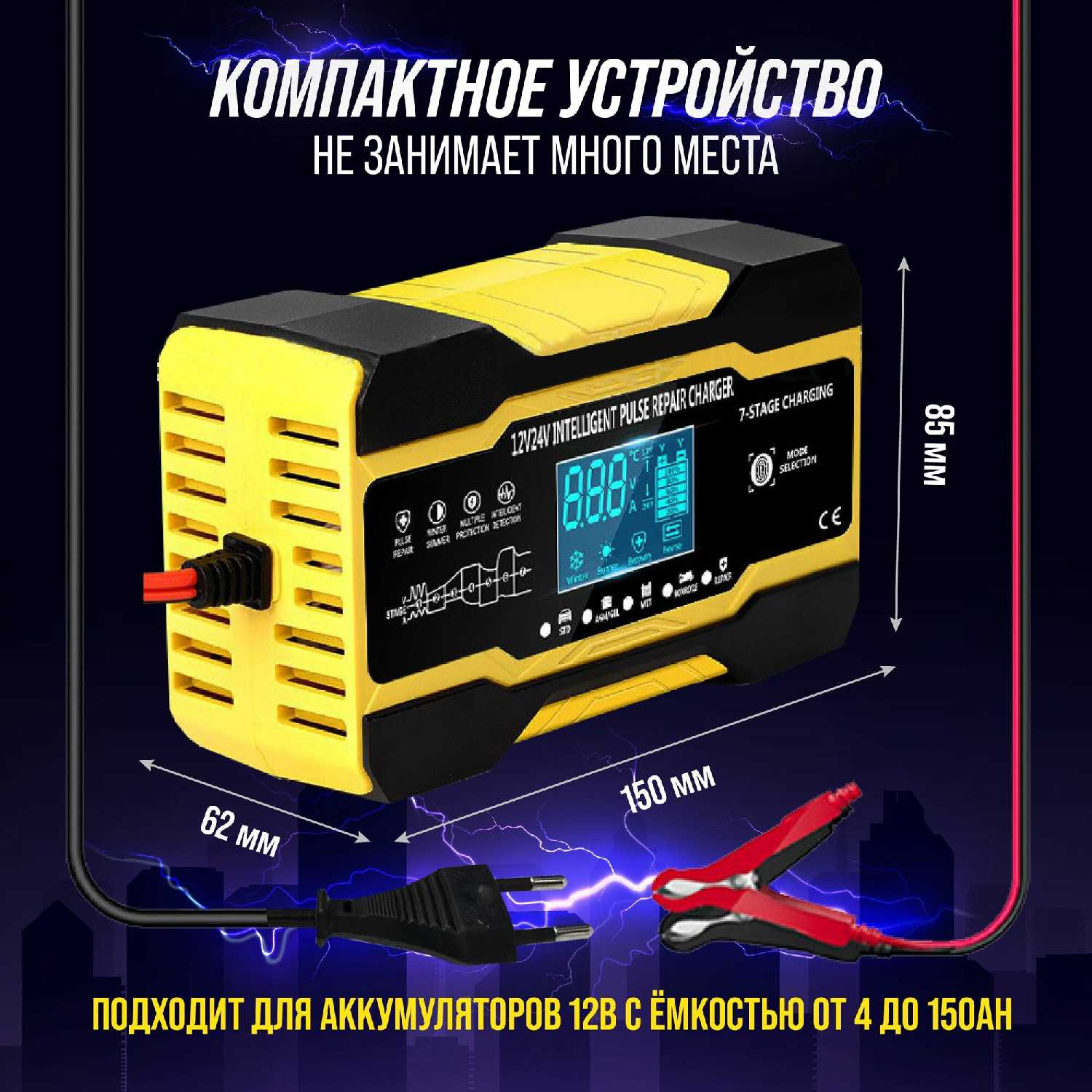 Электронный дисплей показывает текущее напряжение, процент заряда и этап процесса (например, "зарядка", "восстановление"). Это позволяет отслеживать прогресс в реальном времени — например, при зарядке с 40% до 100% за 2-3 часа. Информация обновляется динамически, но детали вроде силы тока не выводятся. -