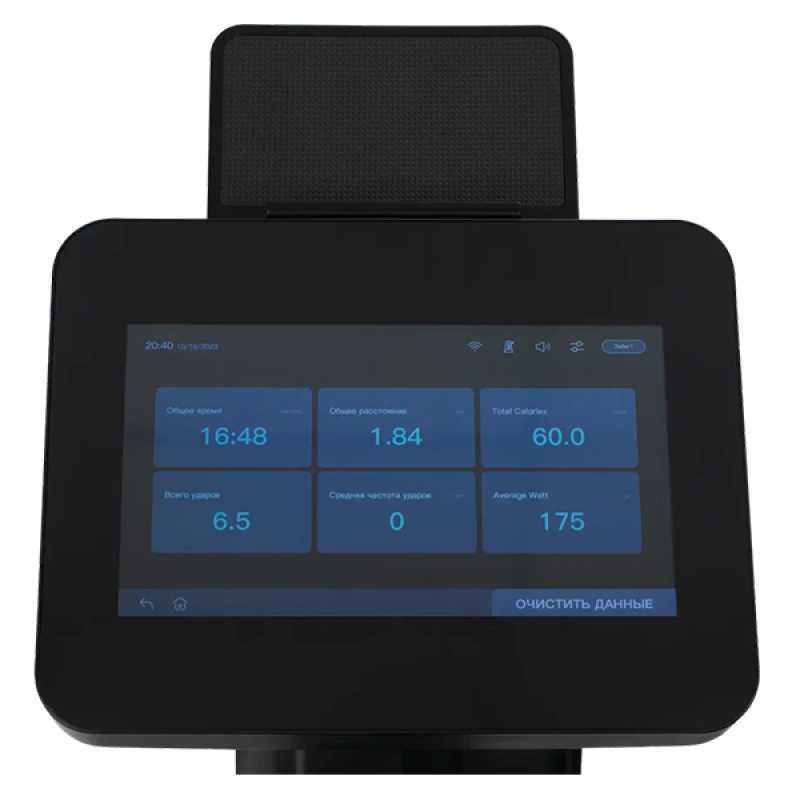 Показания дисплея : | время тренировки, количество гребков в минуту, количество гребков за тренировку, пройденная дистанция, пульс, расход калорий |